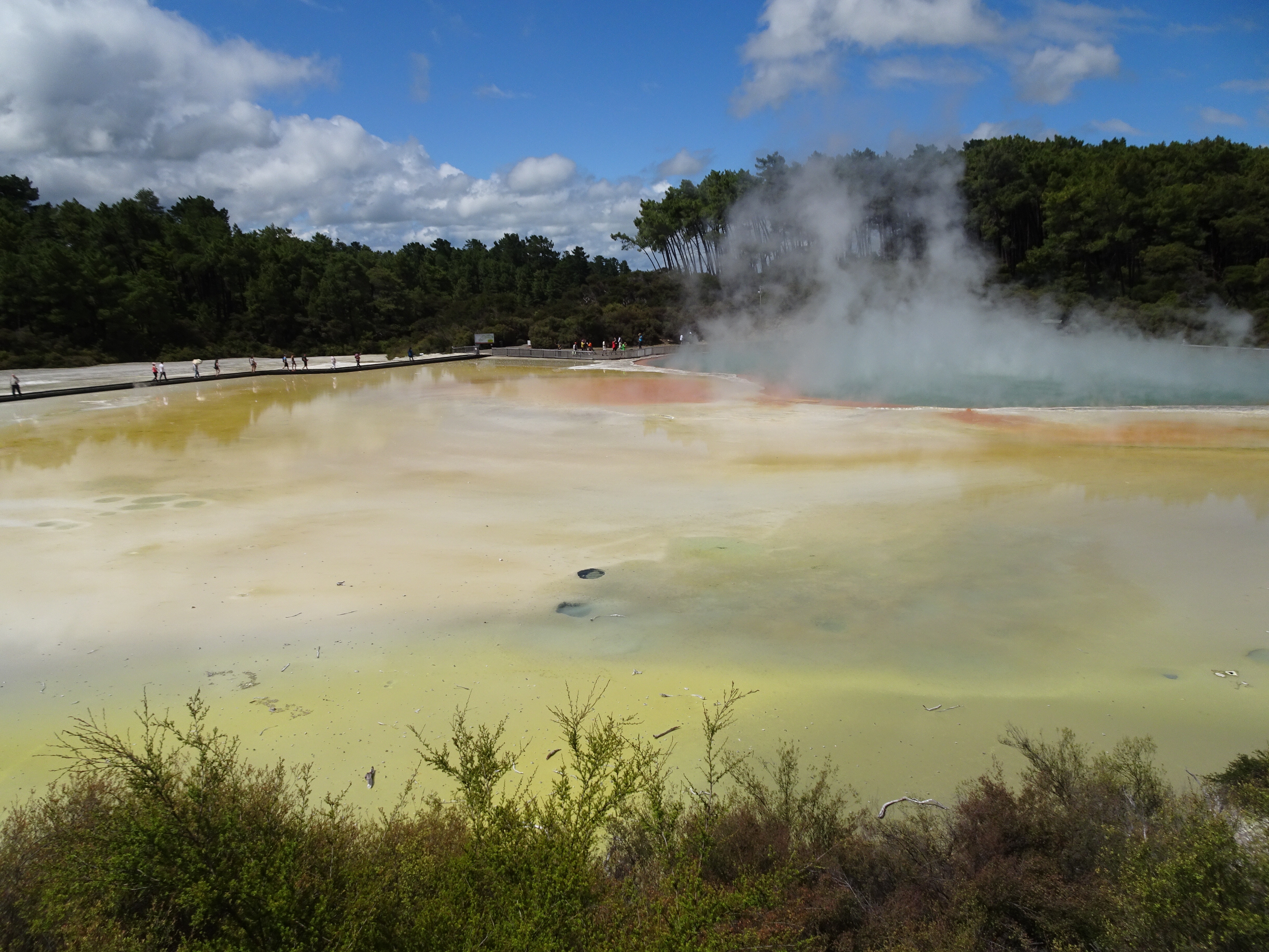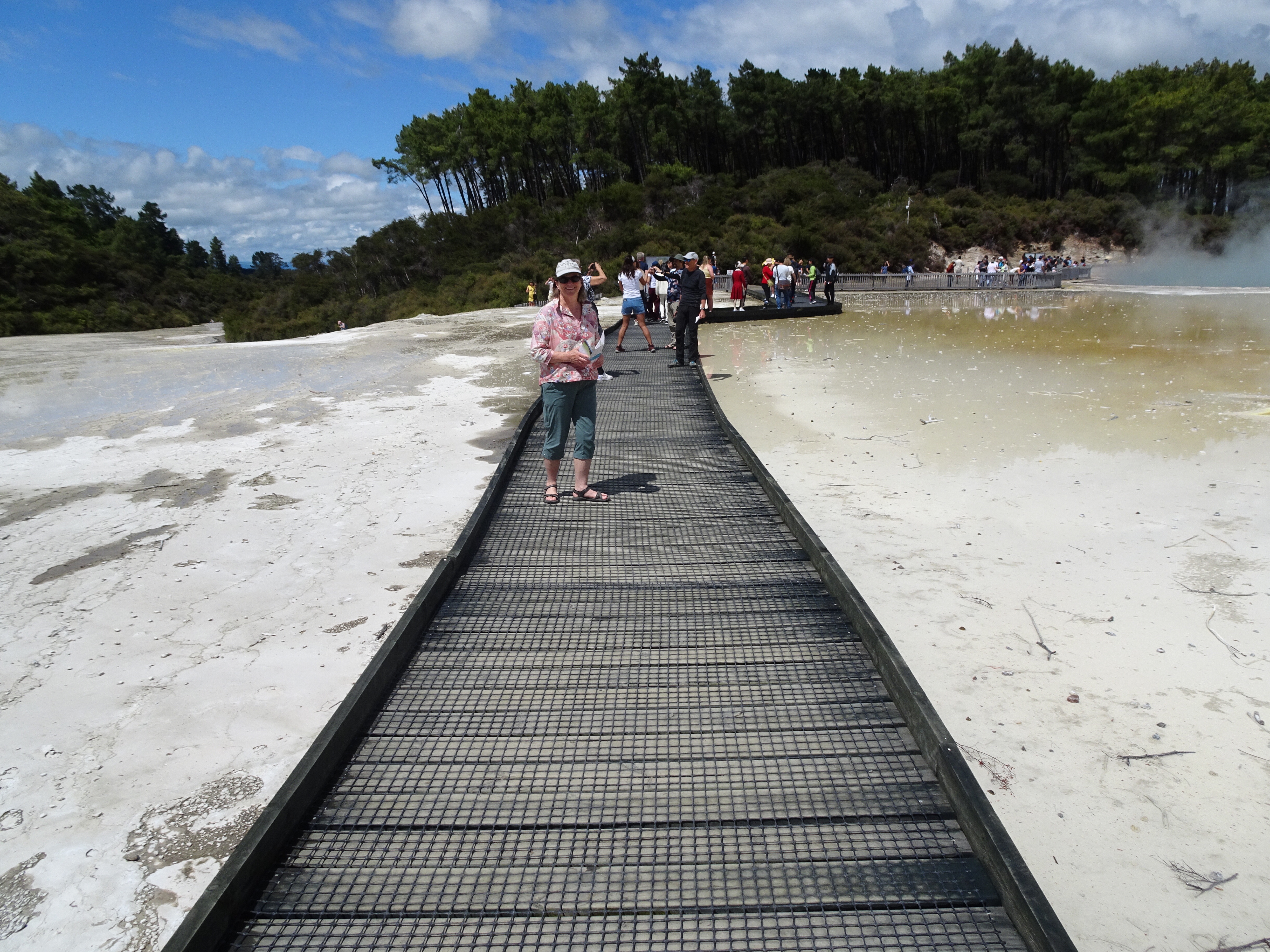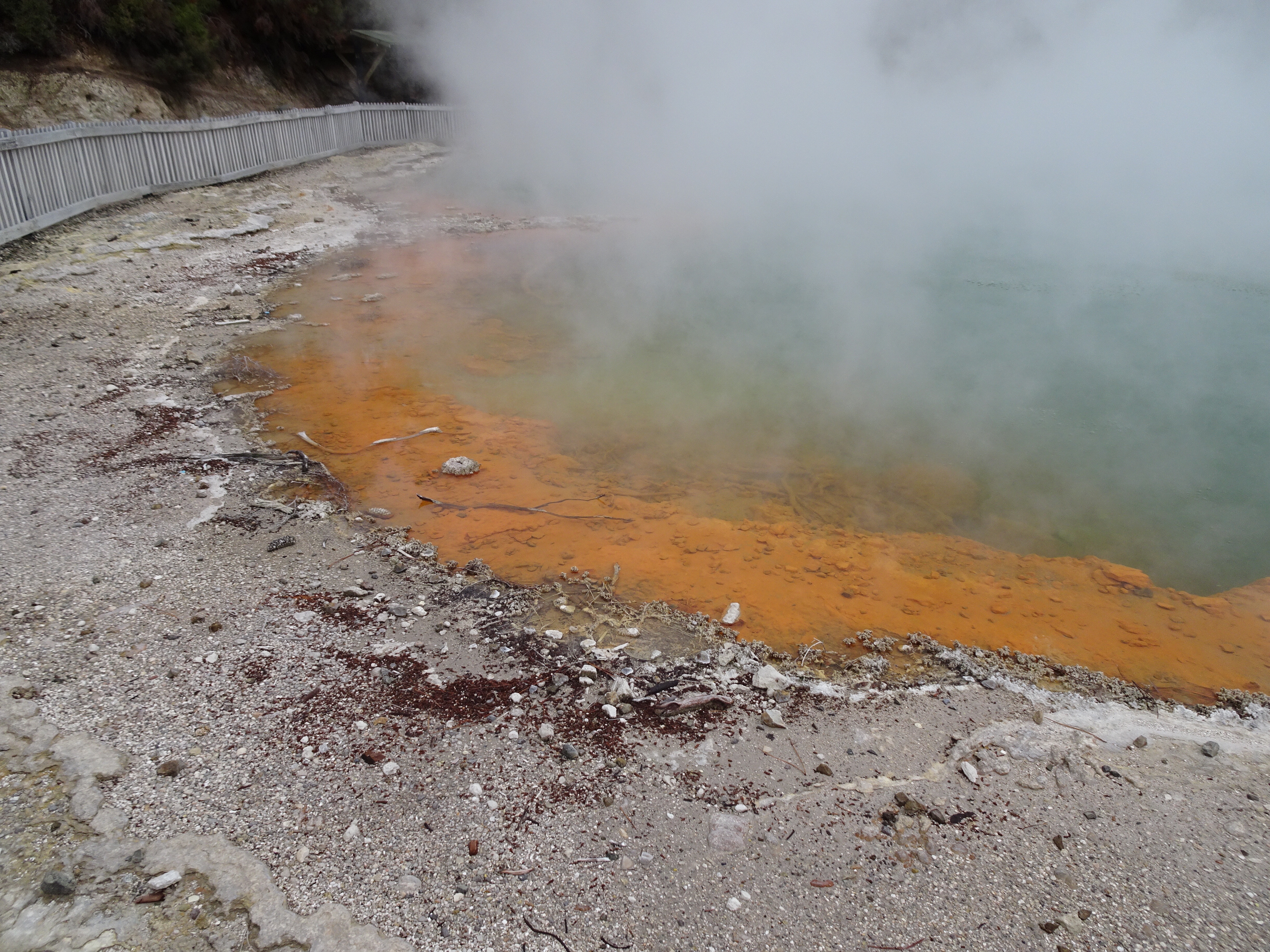 Boxing Day we headed to Taupo. On the highway to Taupo, we stopped at the Waiatapo Geothermal area. It has the largest hot pool in the Southern Hemisphere, as well a bubbling mud pits and caves filled with boiling water. They used the sounds of the boiling water to portray Mordor in the Hobbit movie. They also filmed some scenes here.