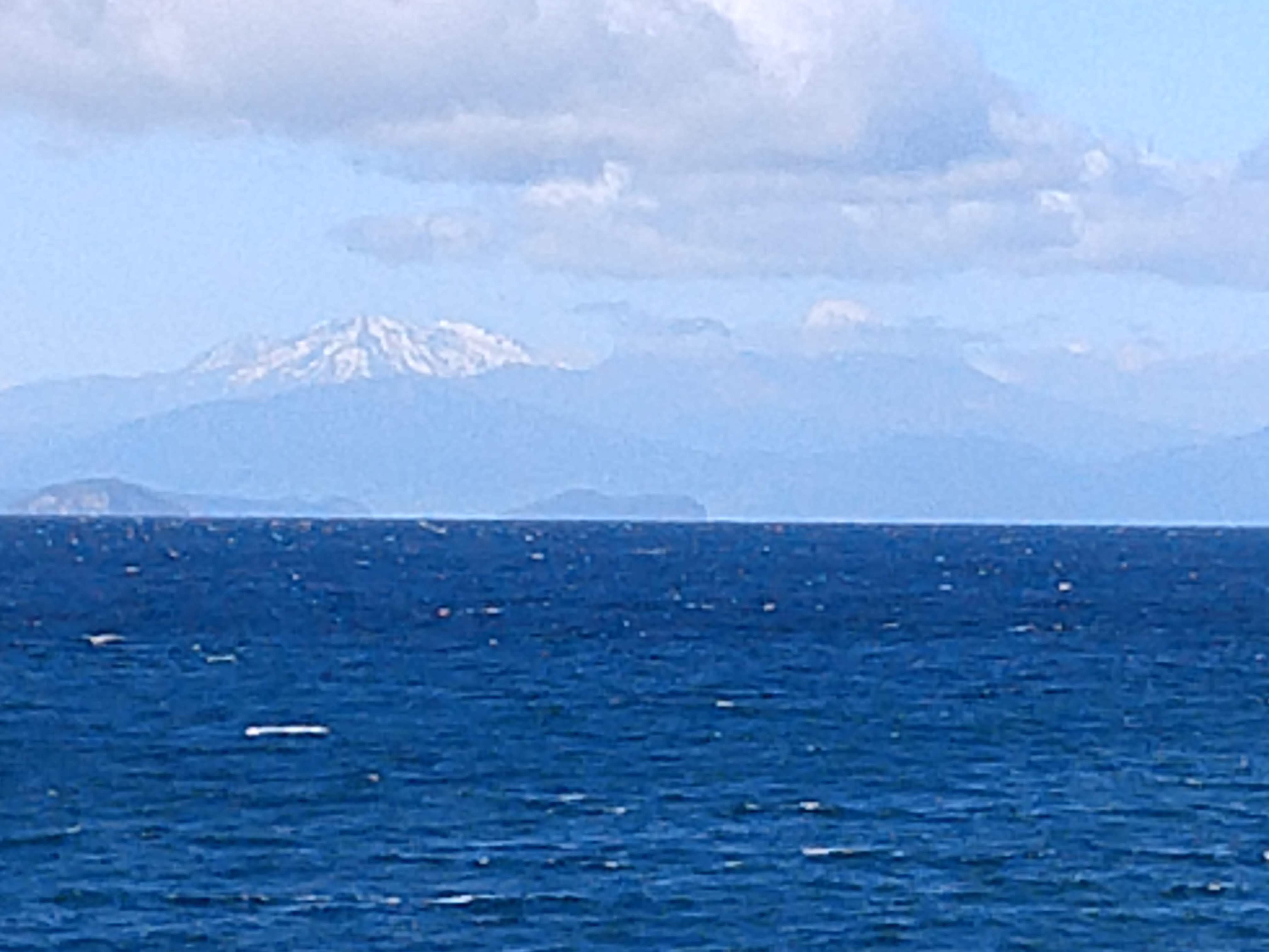 Taupo Lake with volcanoes in the distance. They are way overdue to erupt. New Zealand is volcanic, and everybody knows that any day, there could be an eruption. New Zealand, though, has no natural predators. Legends say that gods decided that people here shouldn’t have to be worried about both.