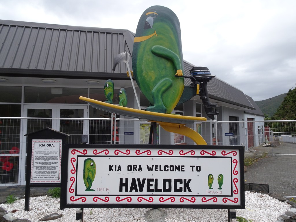 One day, we drove from Picton to Havelock, which is a small town on the Sound, about twenty five miles from Picton. There are bays along the way which are great for kayaking, because they are so beautiful and so calm. We hiked along an estuary trail near Havelock, and we saw white-faced herons, black swans, black stilts, pied oystercatchers, shags (those are cormorants) and best of all, royal Australasian spoonbills. Havelock is the world’s capital of green-shelled mussels. We had some for lunch after the hike.
