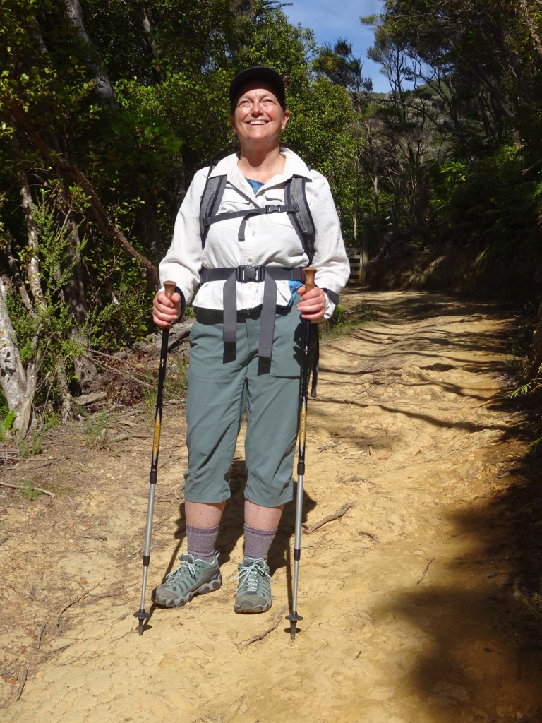 There were a few other people on the trail, but we were mostly alone. We stopped for a break up at a viewpoint, and were soon joined by a couple of Wekas. These are New Zealand flightless birds who like to hang around humans. They are known for stealing things and going where they shouldn’t. This one tried to steal Monica’s hat. The wekas are declining in population, and people do tend to have a soft spot for them.